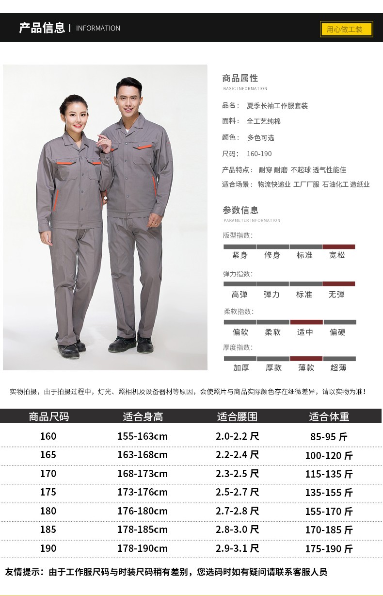夏季純棉長袖工作服